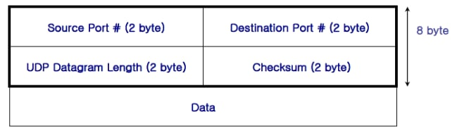 - 흐름제어, 오류제어, 또는 손상된 세그먼트의 수신에 대한 재전송 하지 않음