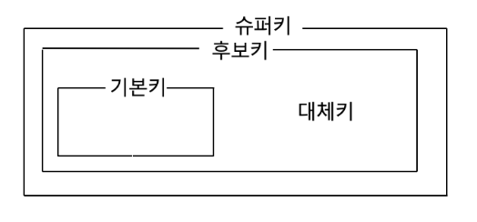 - 유일성의 특성을 만족하는 속성 또는 속성들의 집합
